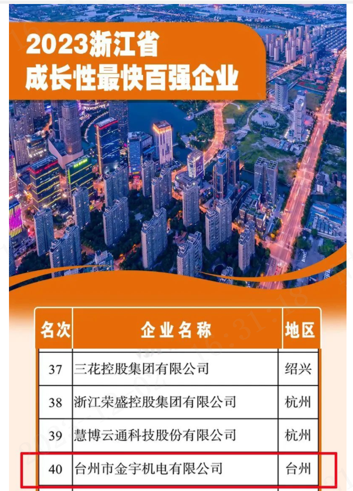 金宇星以27.75%的增長率躋身2023年浙江省成長性最快百強企業第40位,臺州地區第1位,“強”勢領先。