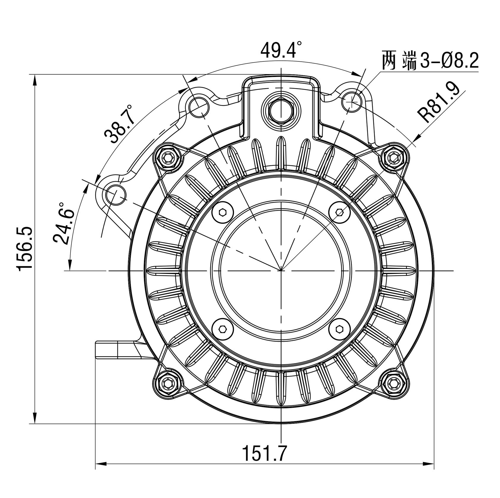 安裝孔直徑: 3-φ8.2